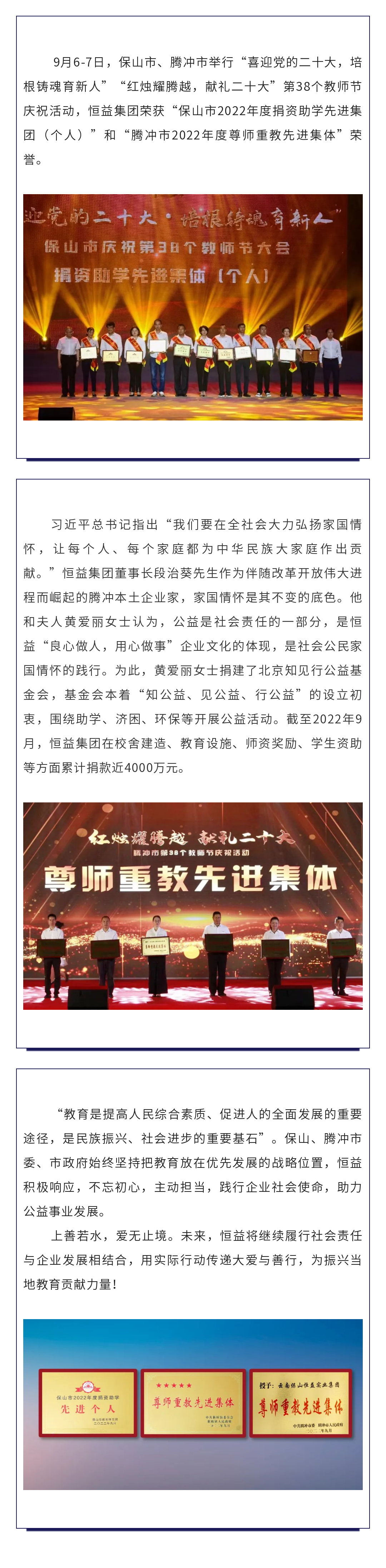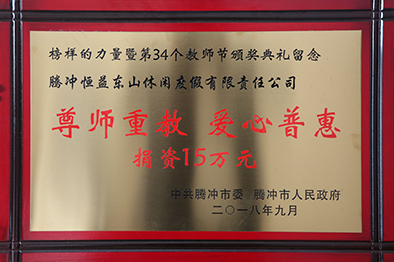 2018年9月10日,榜樣的力量暨第34個(gè)教師節(jié),恒益集團(tuán)向中共騰沖市委市政府捐資15萬元;