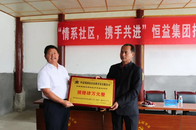 2018年6月1日,為增進(jìn)社區(qū)發(fā)展,提升社區(qū)公共場所相關(guān)配套設(shè)施,恒益集團(tuán)向騰越鎮(zhèn)玉璧社區(qū)芹菜塘自然村捐贈4萬元;