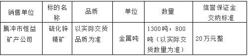 騰沖市恒益礦產(chǎn)品經(jīng)貿(mào)有限責任公司關(guān)于鋅精礦競價銷售公告(202001)號