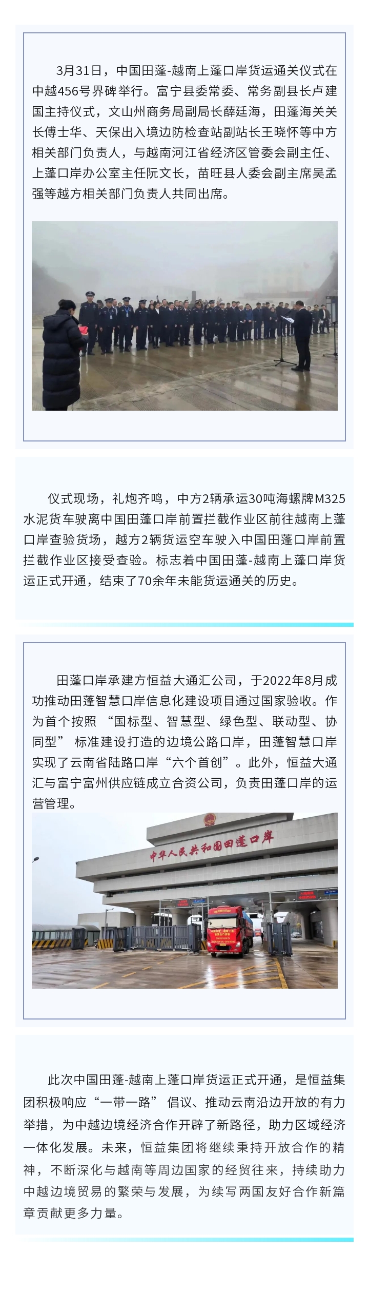 中國(guó)田蓬-越南上蓬口岸貨運(yùn)正式開通 來源: 瀏覽量:3634 日期:2025-04-01 分享到: 上一篇:騰沖翡翠博物館舉辦《“翡翠”一詞的來歷》 專題翡翠文化公益論壇 下一篇:政企攜手繪藍(lán)圖 林下經(jīng)濟(jì)助振興
