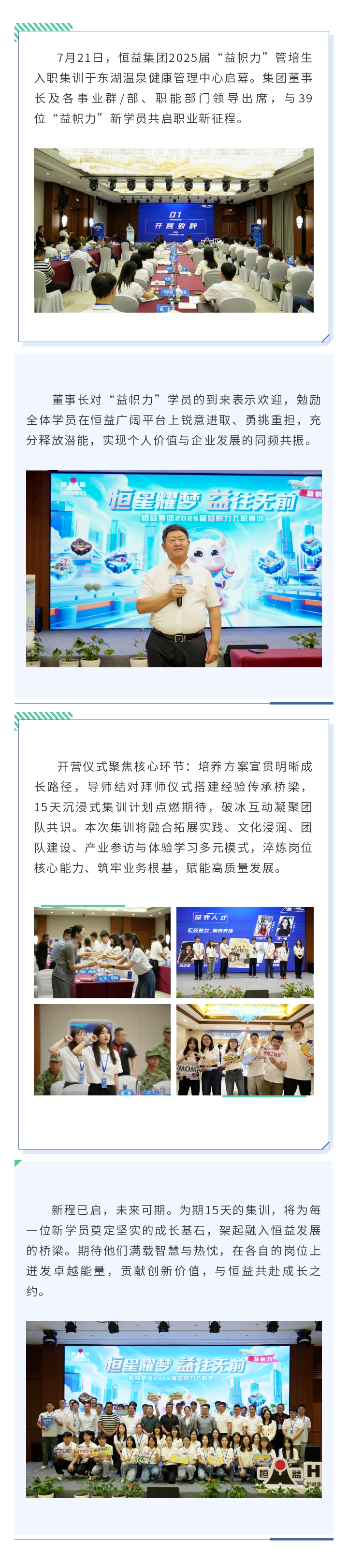 恒益集團2025屆“益幟力”管培生集訓(xùn)開營啦! 來源: 瀏覽量:2783 日期:2025-07-22 分享到: 上一篇:恒益集團與萬博集團攜手共建揚州溫泉醫(yī)康養(yǎng)項目 下一篇:恒益集團召開第三屆董事會第三次會議暨2025年半年度經(jīng)濟運行分析會議