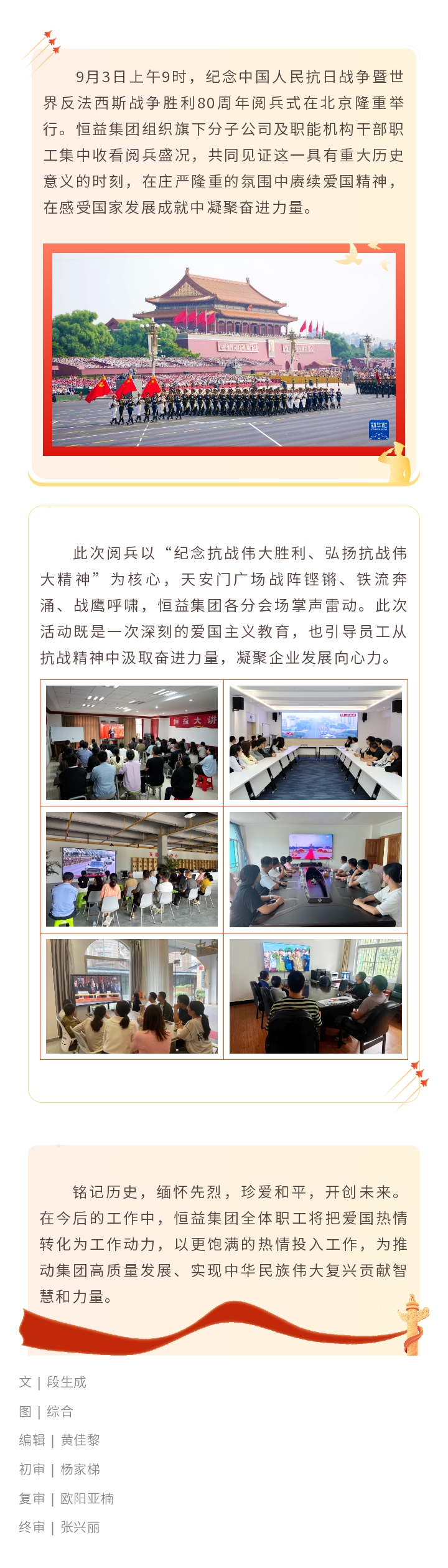 銘記榮光,凝聚力量丨恒益集團(tuán)組織集中收看抗戰(zhàn)勝利80周年閱兵盛況 來源: 瀏覽量:2448 日期:2025-09-03 分享到: 上一篇:恒益集團(tuán)濱鯤中智與猴橋鎮(zhèn)簽約 共筑高原高端淡水魚養(yǎng)殖基地 下一篇:恒益集團(tuán)受邀參加“緬甸·中國(guó)經(jīng)濟(jì)合作促進(jìn)交流會(huì)”,簽署兩項(xiàng)合作諒解備忘錄