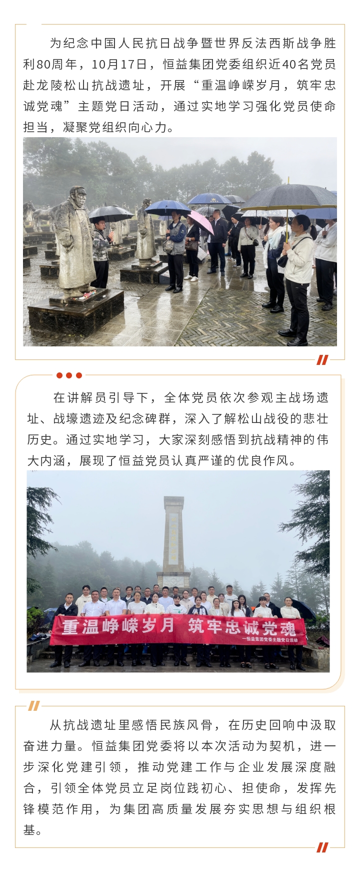 恒益集團黨委赴松山抗戰(zhàn)遺址開展主題黨日活動 來源: 瀏覽量:2081 日期:2025-10-17 分享到: 上一篇:共筑康養(yǎng)新未來 | 恒益集團與古兜控股強強聯(lián)手,簽署戰(zhàn)略合作協(xié)議 下一篇:恒益集團開展高管刑事法律風(fēng)險防范與合規(guī)體系建設(shè)專項培訓(xùn)