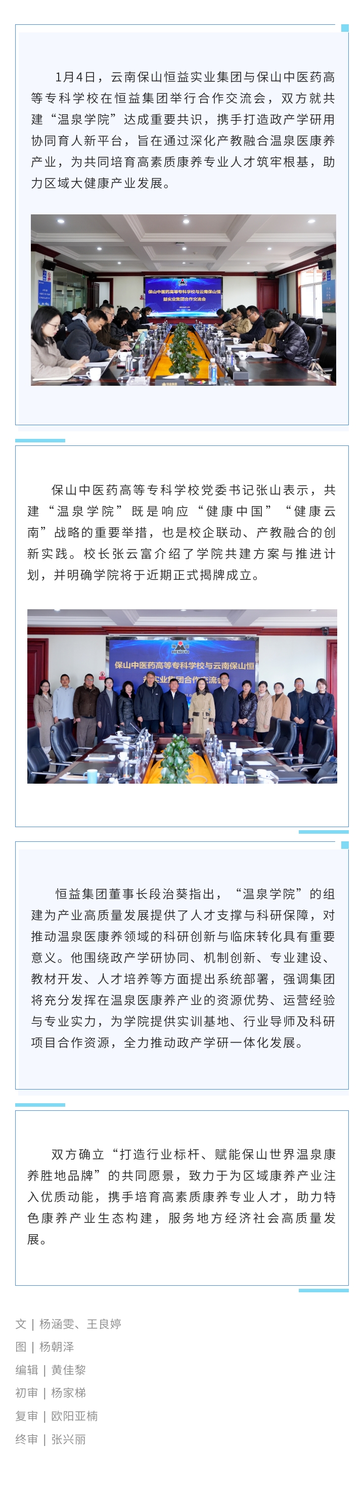 校企協(xié)同 產(chǎn)教融合 | 恒益集團(tuán)與保山中醫(yī)藥高等專科學(xué)校達(dá)成共建“溫泉學(xué)院”合作共識(shí) 來源: 瀏覽量:1221 日期:2026-01-05 分享到: 上一篇:中國烹飪大師周衛(wèi)先生蒞臨恒益集團(tuán)指導(dǎo)工作 下一篇:恒益集團(tuán)第五批安全員崗前培訓(xùn)圓滿結(jié)束